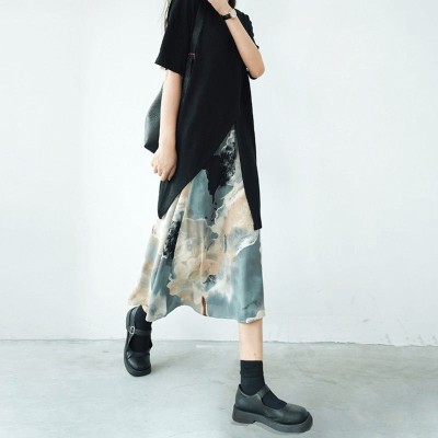 New polo collar dress for summer women's college style aging irregular hem long skirt
